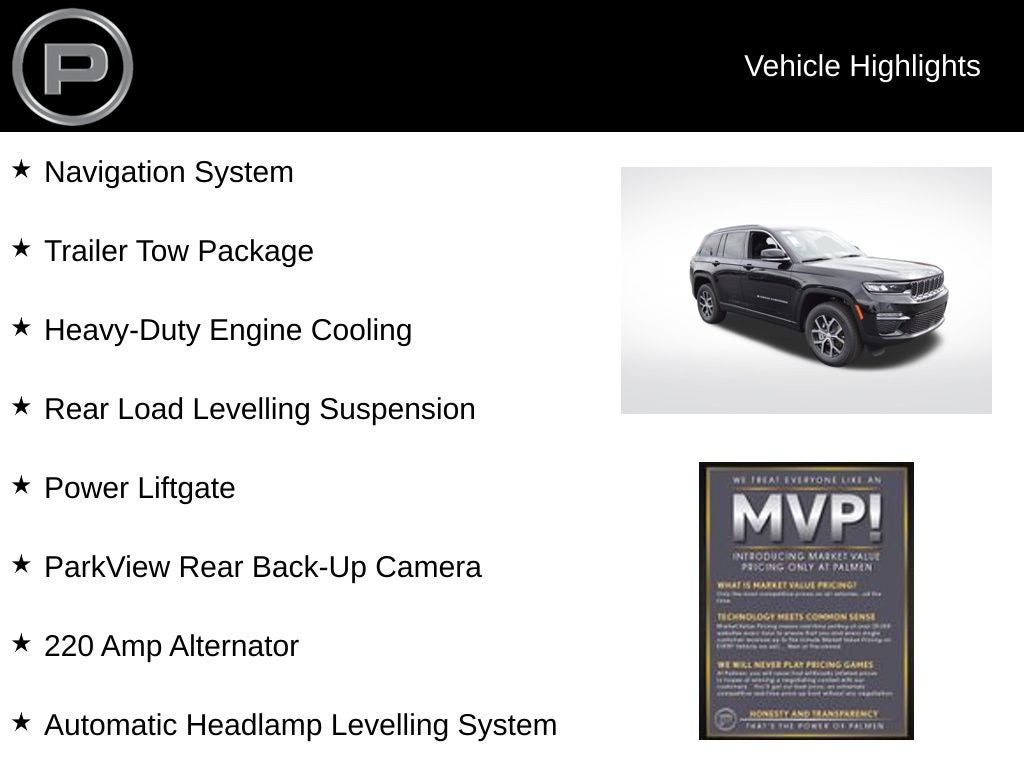 This remarkable SUV is more than just a vehicle – it's a gateway to a world of possibilities. Experience the unmatched capability, refined style, and exceptional comfort of the 2025 Jeep Grand Cherokee Limited. Visit our showroom today and discover how this exceptional SUV can enhance your driving experience. Price includes the following incentives, not all customers may qualify. See dealer for details.: $2250 - 2025 National Retail Bonus Cash . Exp. 03/02/2026