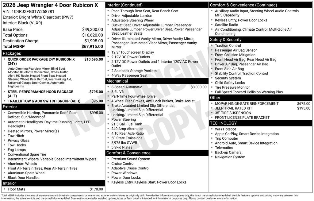 Rubicon X Price includes the following incentives, not all customers may qualify. See dealer for details.: $1000 - 2026 National Retail Bonus Cash . Exp. 04/30/2026
