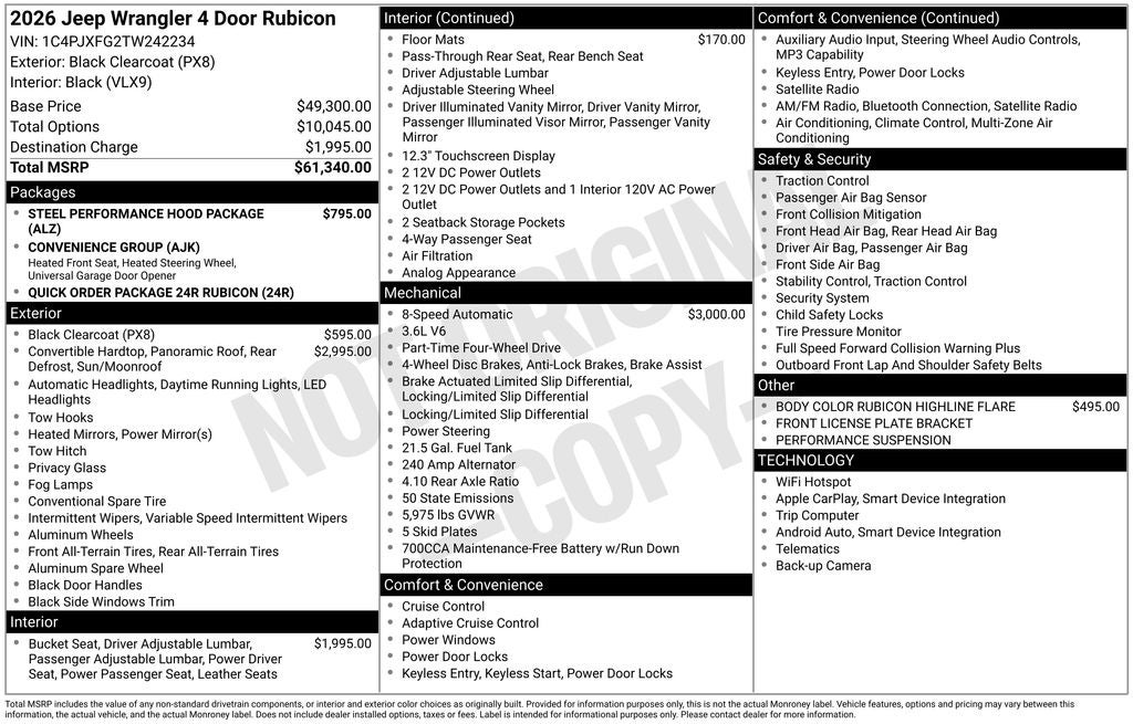 Rubicon Price includes the following incentives, not all customers may qualify. See dealer for details.: $1000 - 2026 National Retail Bonus Cash . Exp. 04/30/2026