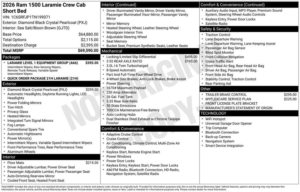 Elevate your driving experience and make the 2026 Ram 1500 Laramie your own. Contact us today to schedule a test drive and discover the true meaning of capable luxury. Price includes the following incentives, not all customers may qualify. See dealer for details.: $3500 - 2026 National Retail Bonus Cash . Exp. 04/30/2026 $500 - 2026 National 2026 First Responder Bonus Cash . Exp. 01/04/2027 $500 - 2026 National 2026 Military Bonus Cash . Exp. 01/04/2027