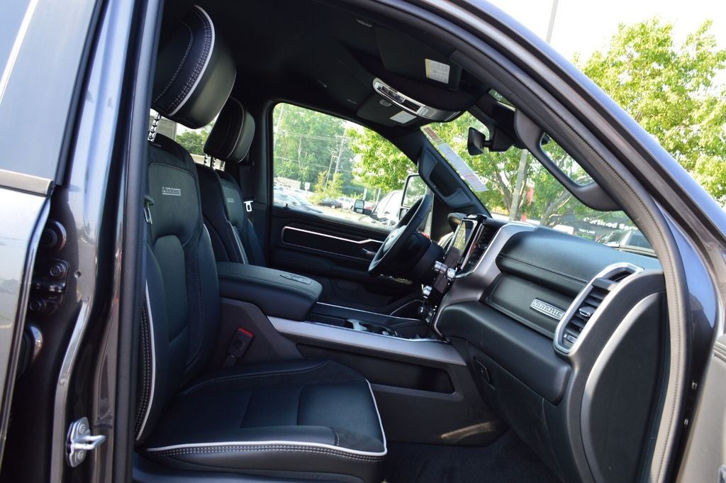 Elevate your driving experience with the Ram 1500 Laramie's exceptional array of technology and convenience features. The intuitive 8.4-inch touchscreen display with integrated navigation puts the world at your fingertips, while the premium 10-speaker audio system provides a concert-hall experience. Dual-zone automatic climate control, a heated steering wheel, and a power-adjustable driver's seat with memory settings ensure your comfort mile after mile.