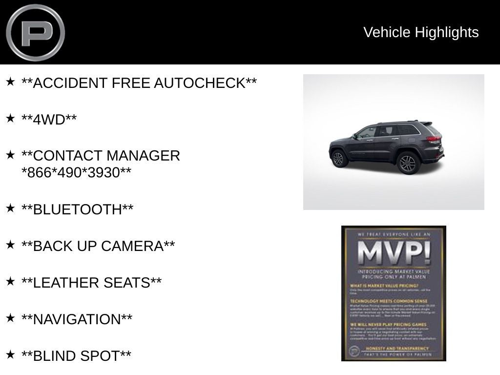 Drive luxury, capability, and advanced technology with this 2021 Jeep Grand Cherokee Limited 4x4, a premium SUV built for performance across Southeast Wisconsin and Northern Illinois. Powered by a 3.6L V6 engine with an 8-speed automatic transmission and legendary 4x4 capability, this Jeep delivers smooth power and confident all-season handling. Features include Uconnect 8.4 touchscreen with navigation, Apple CarPlay & Android Auto, Bluetooth® connectivity, backup camera, ParkSense rear parking sensors, 4G LTE Wi-Fi hotspot, and leather-trimmed seating—perfect for daily driving or weekend adventures.