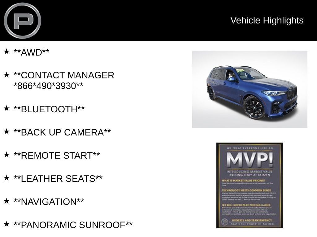 We make upgrading simple with trade-ins welcome and financing available to fit your budget. If you’re searching for a luxury used BMW X7 M50i in Kenosha, this one stands out. Visit Palmen Kia or Palmen Motors in Kenosha, WI today to schedule your test drive.