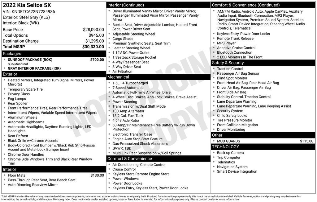 - Vehicle Name: Kia Seltos