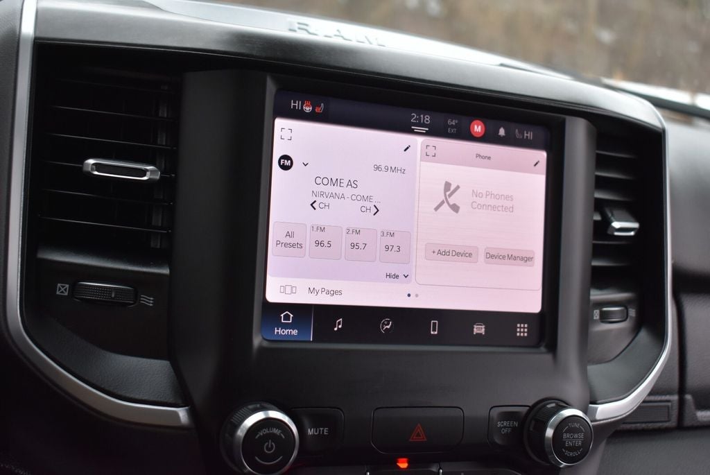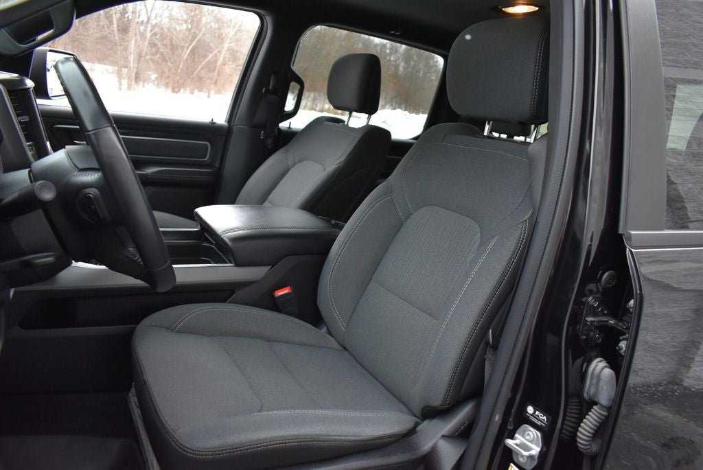 This Ram 1500 Big Horn features the Big Horn Level B Equipment Group, deluxe cloth bucket seats, ParkView backup camera, push-button start, cruise control, and streaming audio with Bluetooth® connectivity. The spacious Crew Cab provides excellent passenger room, while the 5'7 bed, anti-spin rear differential, trailer wiring harness, and strong payload capacity make it ready for work or play.