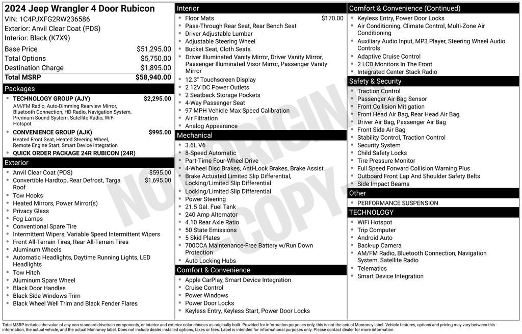 Take your adventures further in this 2024 Jeep Wrangler Rubicon 4-Door 4x4, now available at Palmen Kia and Palmen Motors in Kenosha, Wisconsin. Finished in striking Anvil Clear Coat with a black interior, this Rubicon delivers legendary Jeep capability with modern technology and comfort.