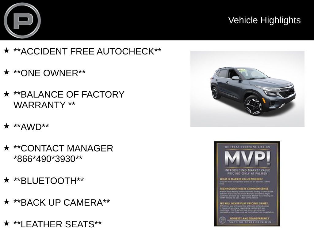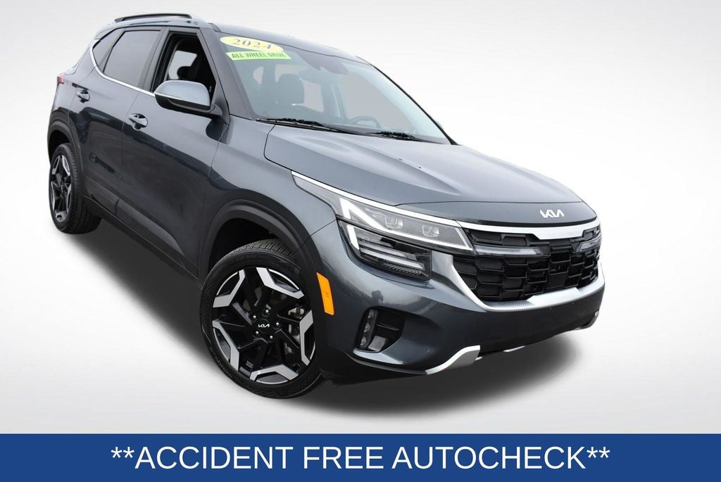 Sporty, smart, and AWD capable — this 2024 Kia Seltos SX Turbo AWD is available now at Palmen Kia and Palmen Motors in Kenosha, WI. Finished in sleek Gravity Gray with a refined Black interior, this compact SUV delivers turbocharged performance and premium features perfect for Wisconsin and Northern Illinois drivers.