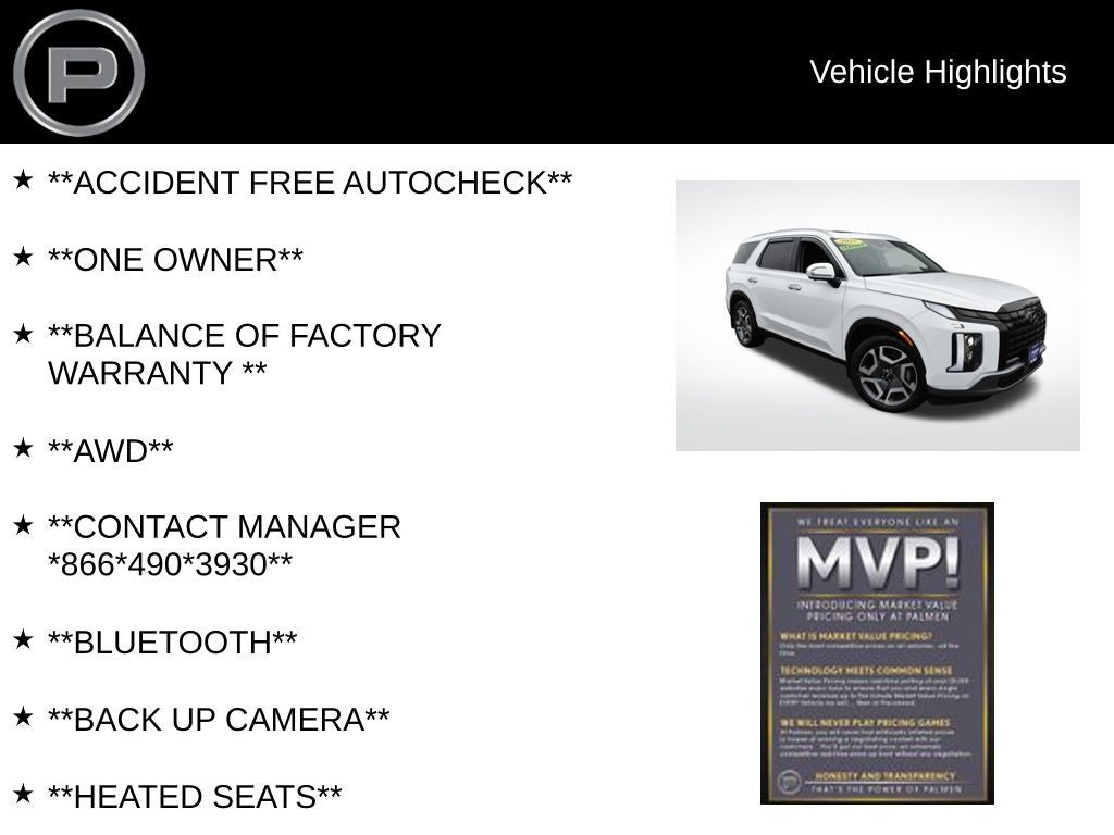 Experience premium comfort, advanced safety, and all-weather confidence in this 2025 Hyundai Palisade SEL Premium AWD, now available at Palmen Kia and Palmen Motors in Kenosha, Wisconsin. Finished in elegant Hyper White with a refined Black interior, this three-row SUV is ideal for families and commuters alike.
